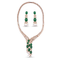 The necklace drapes like a work of art, adorned with lab-created resin stones and crystals in striking jewel tone —each precision-cut to capture light and release it in a fire of brilliance. Matching earrings complete the set, echoing the same architectural beauty and chromatic intensity, making this an all-occasion heirloom for the modern muse.