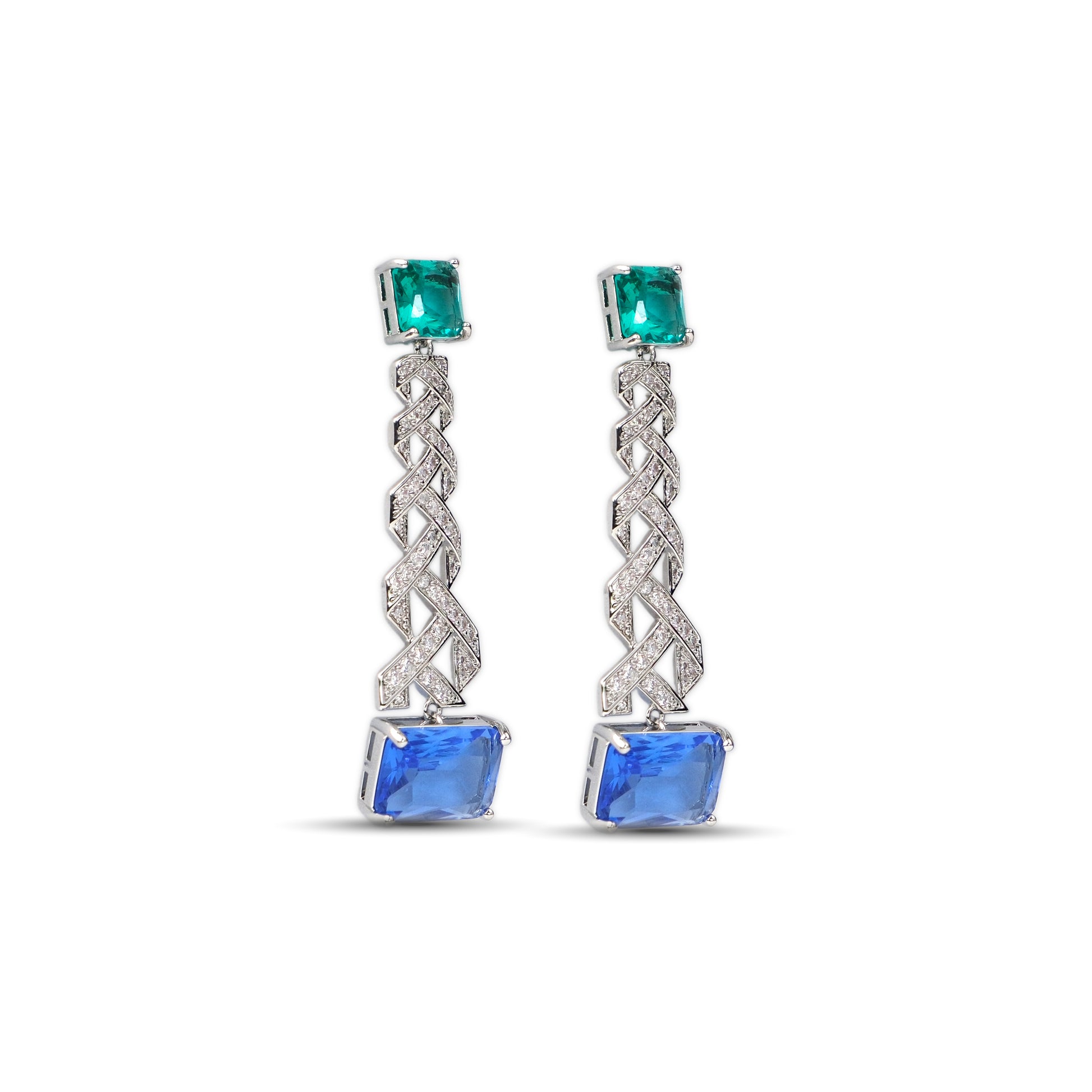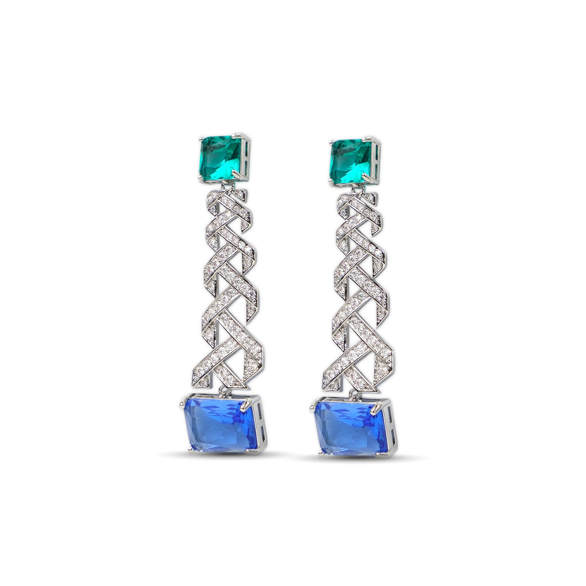 A love letter to the bold and the beautiful. Elara is where statement meets sophistication—set in high-quality colored crystal stones that catch the light like secrets. Light as a whisper, yet unforgettable in presence, this pair is pure editorial energy.