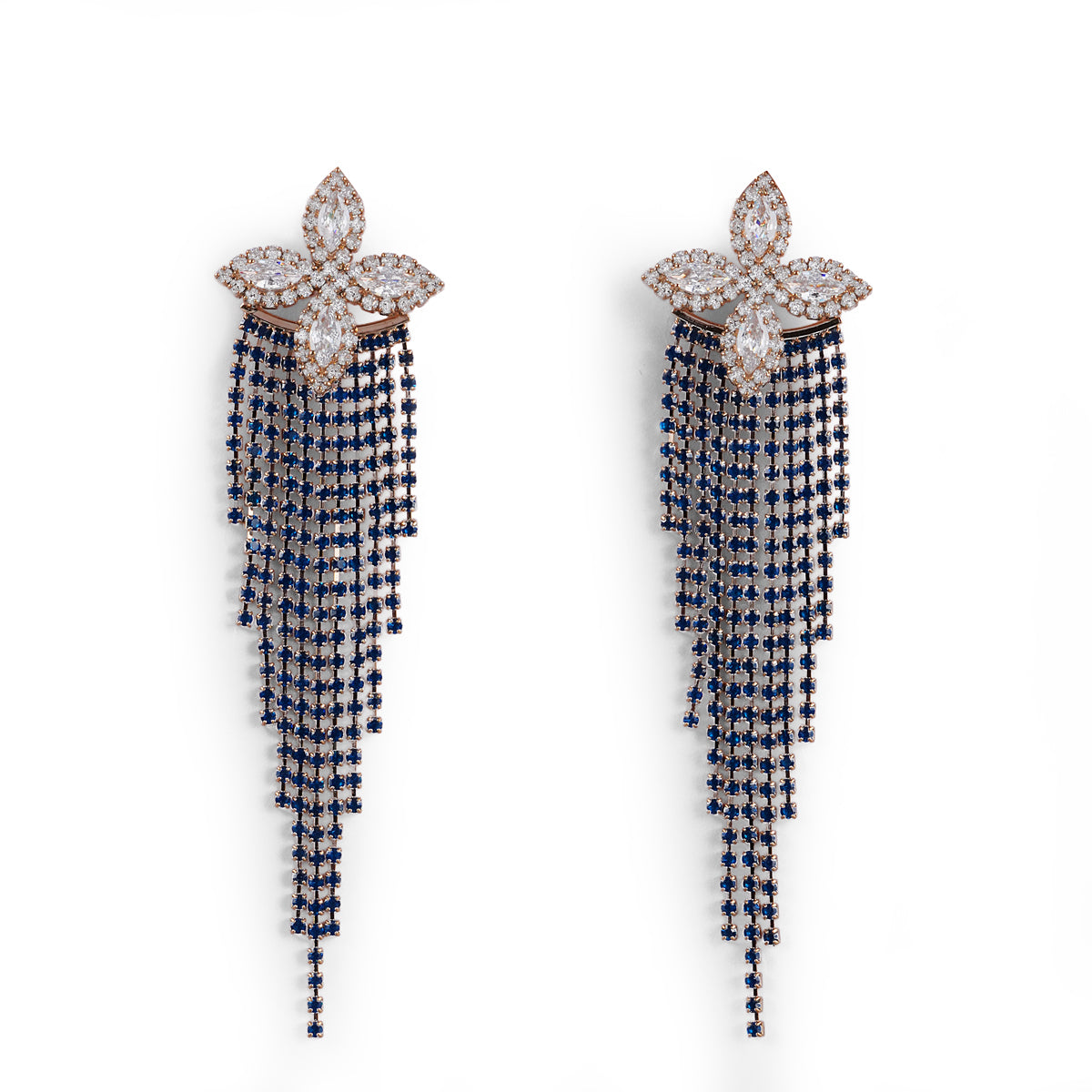 A spark of light, captured in motion. The Isolde Earrings shimmer like a midnight sky streaked with a shooting star—sleek, radiant, unforgettable.
