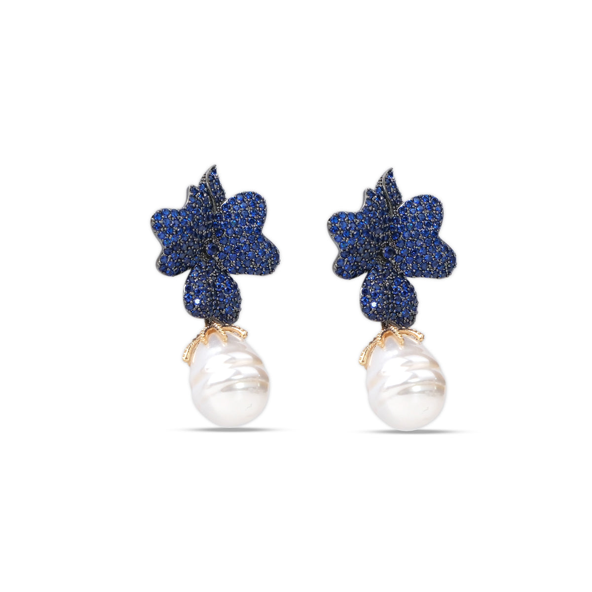 A whisper of elegance, caught in silver and light. The Mira Earrings bloom like dew-touched leaves—each curve set with tinted crystal stones and finished in a luminous cultured pearl.