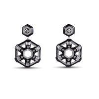 Geometry, elegance, and a hint of rebellion—meet the Rayna Earrings. These striking earrings marry bold black enamel with shimmering crystals, all framed in a refined antique-gold inspired finish. The angular silhouette feels architectural yet wearable, giving every look a touch of high-fashion edge.
